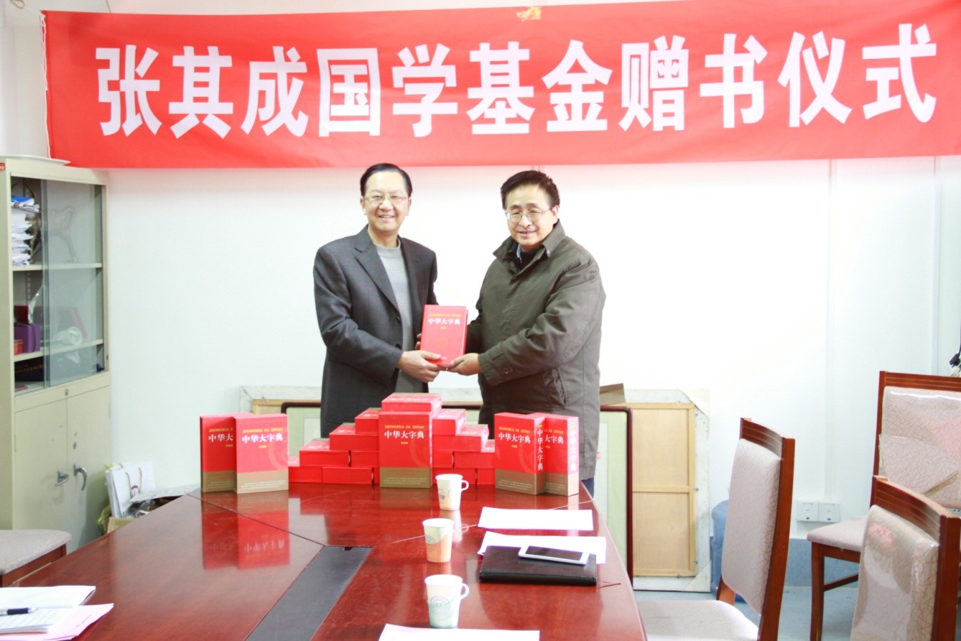 1月4日下午,張其成國學(xué)基金向研究生院捐贈書籍。此次捐贈的書籍為《中華大字典》,共600余冊,價值約6萬元。校長助理、研究生院常務(wù)副院長、研工部部長劉銅華,國學(xué)院院長張其成,研究生院副院長潘彥舒,研究生院副院長、研工部副部長韓振蘊(yùn)及研究生院相關(guān)老師、研究生代表出席活動。