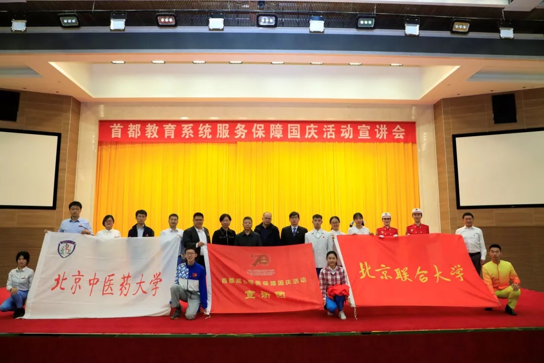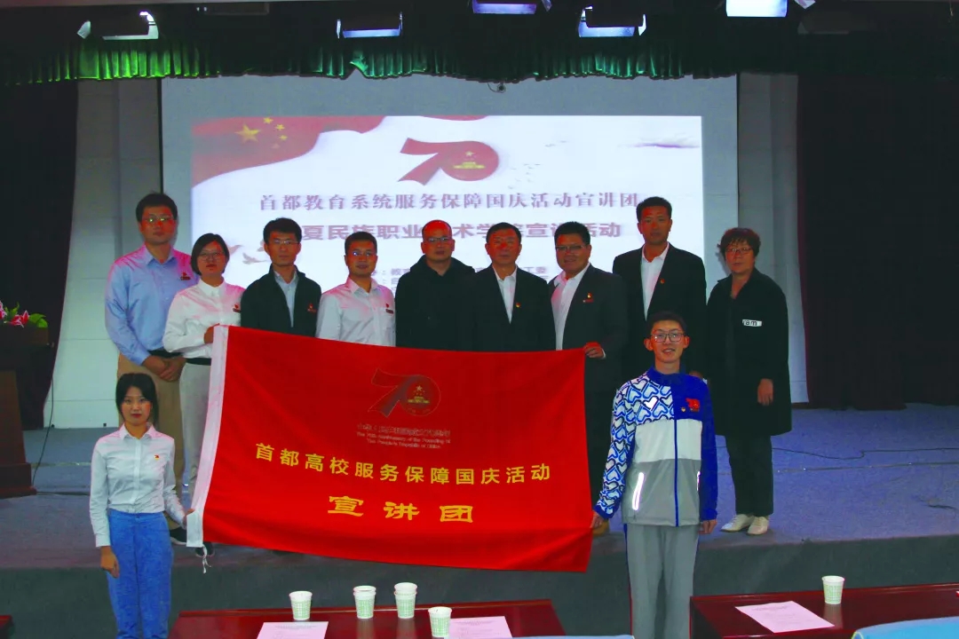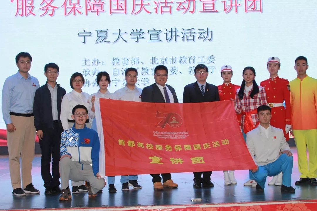 在新中國成立70周年慶祝活動中,北京中醫(yī)藥大學660名師生與首都20余萬軍民一起,參與群眾游行方陣、承擔志愿服務(wù)和保障工作,圓滿完成了為祖國母親慶生的光榮任務(wù)。按照教育部和北京市關(guān)于組建“首都高校服務(wù)保障國慶活動宣講團”要求,北京中醫(yī)藥大學和北京聯(lián)合大學組成宣講團對接寧夏回族自治區(qū)開展主題宣講。學校黨委高度重視,在接到任務(wù)后及時成立工作專班,由校領(lǐng)導任組長,統(tǒng)籌組建了由教授、博士生導師、專職輔導員、思想政治理論課教師和學生代表組成的宣講團,宣講團師生在校內(nèi)外持續(xù)開展宣講活動。