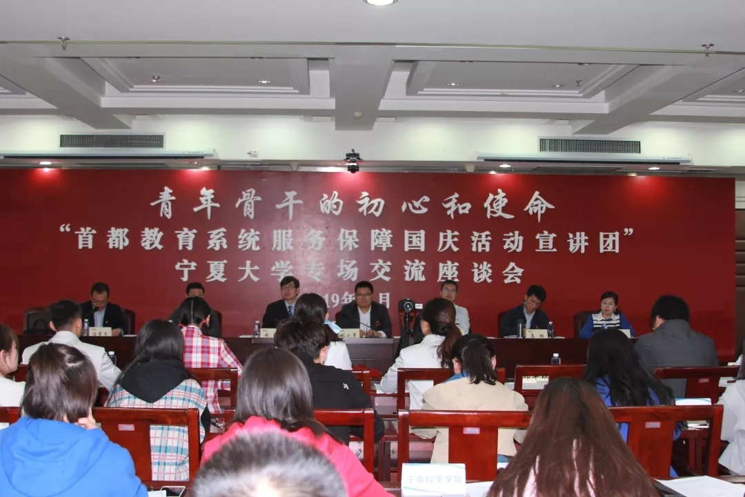 11月5日至7日,由北京中醫(yī)藥大學黨委統(tǒng)戰(zhàn)部常務(wù)副部長張小勇帶隊,7名“國慶70周年群眾游行北京中醫(yī)藥大學大隊宣講團”成員作為“首都教育系統(tǒng)服務(wù)保障國慶活動宣講團”成員代表,赴寧夏開展宣講活動。