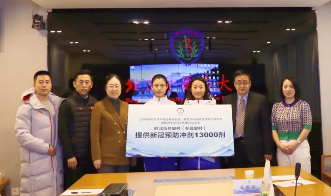 隨著冬奧會臨近,北京中醫(yī)藥大學疫病研究院、教育部中醫(yī)養(yǎng)生學重點實驗室、中醫(yī)養(yǎng)生學北京市重點實驗室發(fā)起,為北京冬奧村(冬殘奧村)提供13000劑新冠預防沖劑。1月22日下午,我校與北京冬奧村(冬殘奧村)場館運行團隊舉辦了線上捐贈儀式。