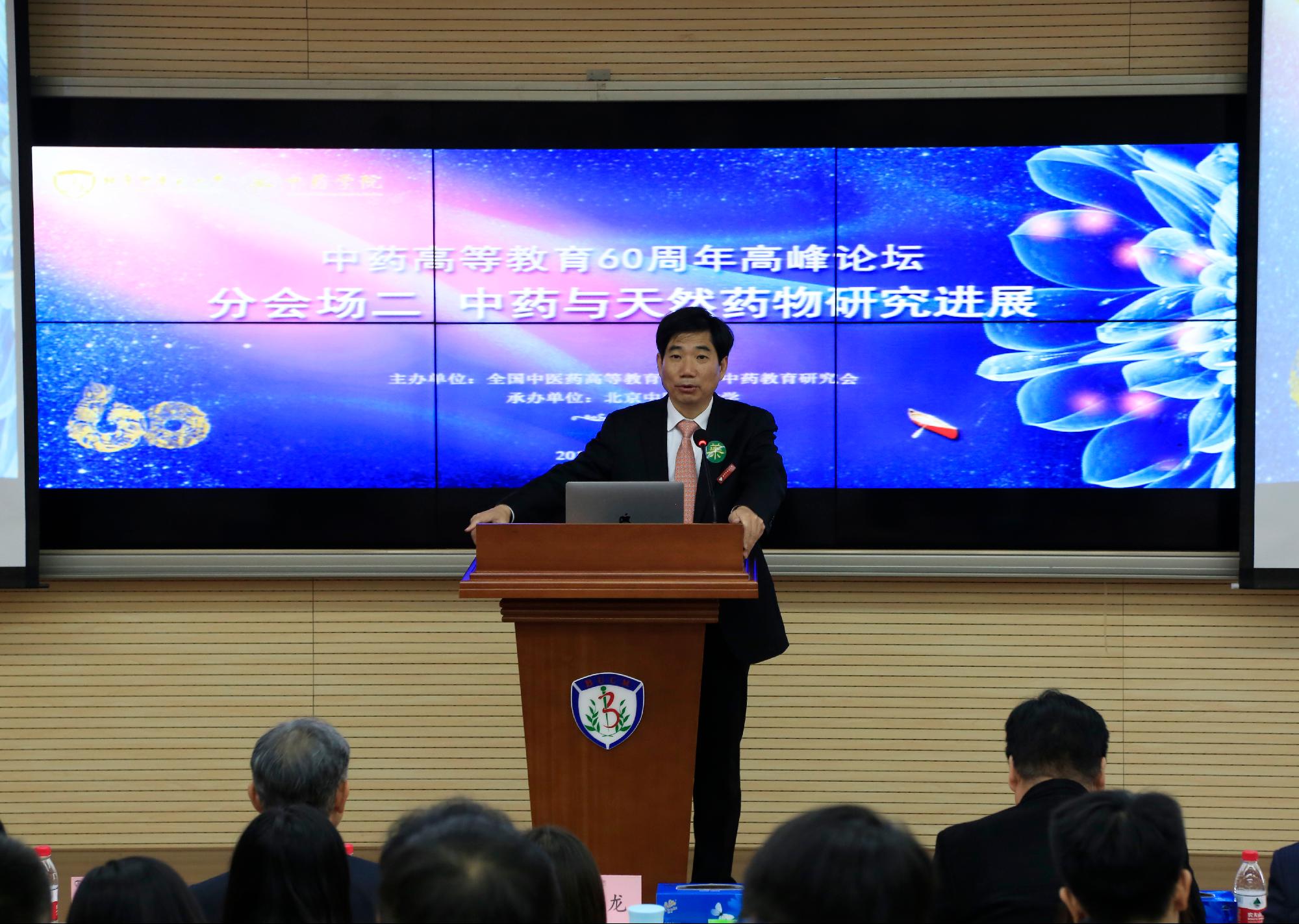 另一場分論壇以“中藥與天然藥物研究進展”為主題,由我校校長徐安龍和中國藥科大學副校長孔令義教授分別主持。來自東京大學的阿部郁朗教授、香港浸會大學的趙中振教授、黑龍江中醫藥大學的王喜軍教授、江西中醫藥大學的楊世林教授、我校中藥學院雷海民教授、南京中醫藥大學胡立宏教授、上海中醫藥大學李醫明教授、廣州中醫藥大學的劉中秋教授分別以《Engineered Biosynthesis of Medicinal Natural Products》、《談中藥傳統經驗鑒別的繼承與創新》、《中醫方證代謝組學:評價中藥有效性的新策略》、《中藥白頭翁的研究與開發》、《中藥配伍科學內涵及中藥先導化合物發現探索》、《蟾毒靈抗腫瘤活性、成藥性優化研究》、《幾種傳統中藥藥效物質研究及應用》、《中藥黃酮成分的肝處置新機制及臨床意義》為題作主題報告。論壇上,還為日本的阿部郁朗教授頒發了我校的境外客座教授證書。
