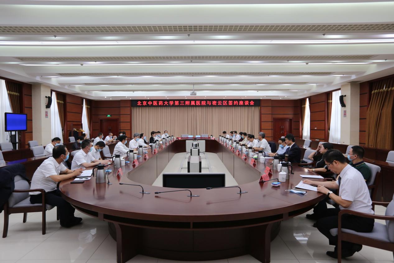 9月30日,北京中醫藥大學第三附屬醫院與密云區人民政府合作框架協議簽訂儀式在密云區舉行,我校校長徐安龍、副校長翟雙慶、北京市中醫管理局副局長羅增剛、密云區區委書記余衛國、區長馬新明、北京中醫藥大學第三附屬醫院黨委書記林建平、院長王成祥及雙方相關領導出席簽約儀式,簽約儀式由密云區副區長馬春秀主持。