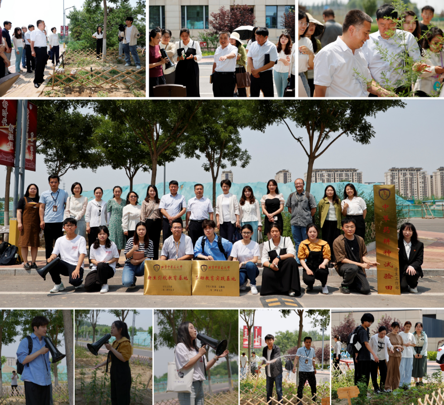 黨委副書記張繼旺,房山區(qū)衛(wèi)健委副主任王中旭,專家指導(dǎo)團(tuán)隊(duì)成員、中藥學(xué)院院長(zhǎng)雷海民與三位學(xué)生代表共同為北京中醫(yī)藥大學(xué)“勞動(dòng)教育實(shí)踐基地”“新生引航教育基地”“中草藥耕種試驗(yàn)田”揭牌。