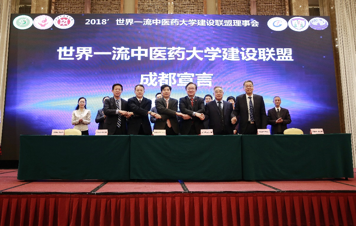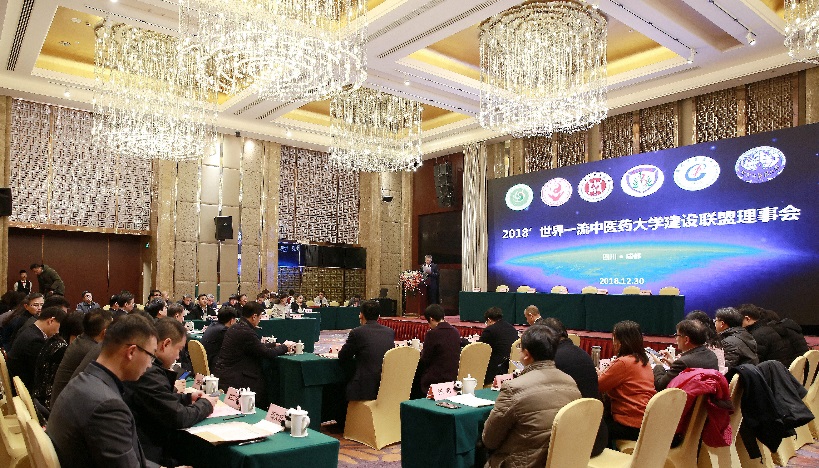 2018年12月30日上午,“世界一流中醫藥大學建設聯盟”理事會會議在成都召開。參加會議的有北京中醫藥大學、上海中醫藥大學、廣州中醫藥大學、成都中醫藥大學、南京中醫藥大學和天津中醫藥大學的校領導及相關部門負責人。會議由成都中醫藥大學校長余曙光主持。