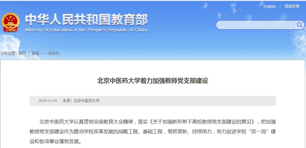 北京中醫藥大學認真貫徹全國教育大會精神,落實《關于加強新形勢下高校教師黨支部建設的意見》,把加強教師黨支部建設作為推動學校改革發展的戰略工程、基礎工程,常抓常新、持續用力,努力促進學校“雙一流”建設和各項事業蓬勃發展。