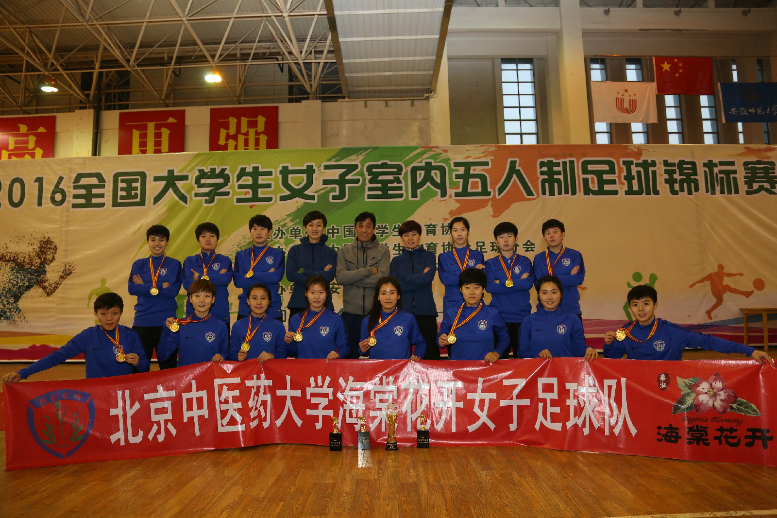 歷經(jīng)8天6場比賽,11月26日下午,2016年全國大學(xué)生女子室內(nèi)五人制足球錦標賽在安徽師范大學(xué)圓滿收官。我校女子足球隊獲得本次比賽超級組的冠軍,并且囊括了最佳教練員、最佳運動員及最佳守門員等獎項。