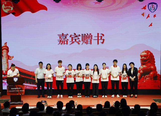馬克思主義學院黨委書記李瑋、院長邱仁富為2024級“青馬工程”學員代表贈送學習書籍《習近平與大學生朋友們第二卷》《中國共產黨簡史》。