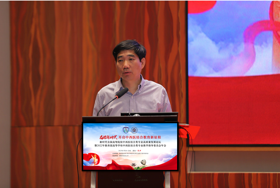 徐安龍主任委員代表中西醫結合教指委對各位專家和同仁的參會表示衷心的感謝。他指出,本次會議是貫徹落實黨的二十大精神,貫徹落實習近平總書記對于教育的重要論述和對中醫藥工作重要指示的具體行動,是一場難得的學術交流。他希望各位委員和專家通過這個高水平的交流平臺,以問題為導向,更加聚焦中西醫結合人才培養的關鍵環節和核心問題,深入探討中西醫結合事業在新時代守正創新的路徑與方法。他強調指出,國家級中西醫結合類一流專業建設負責人要著重交流介紹學校推進中西醫結合人才培養改革發展的特色做法和亮點工作,并要以深耕細作、凝神靜氣、久久為功的精神,以課程改革為核心,持續深入推進中西醫結合人才培養模式改革。
