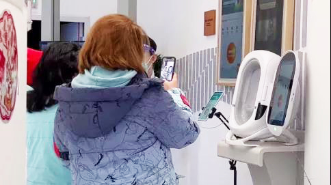 “10秒”中醫藥體驗館展示的中醫四診體質監測儀,由北京中醫藥大學生命科學學院張曉晴教授團隊與上海道生醫療科技公司聯合開發。該設備用一分鐘就可完成人體中醫健康狀態的檢測分析,展現了數字中醫科技創新獨特魅力。現場的每個來訪者都倍感新鮮驚奇,對中醫的數字化、智能化創新有了全新的認知。