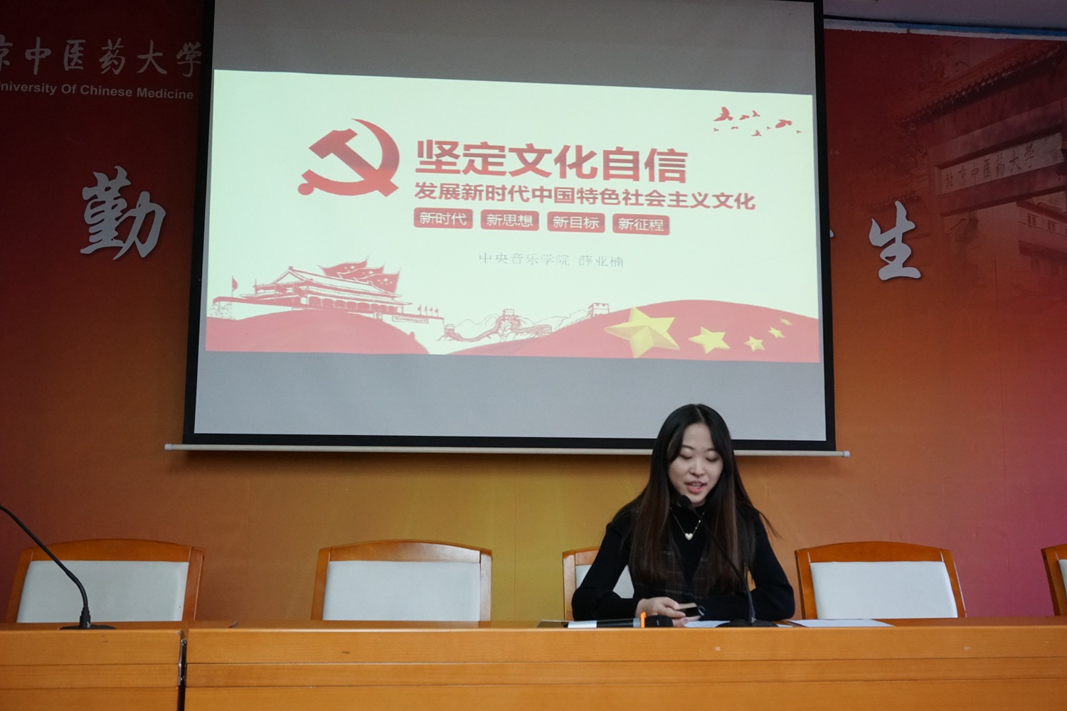 在谷書記的主題報告之后,北京高校學習習近平新時代中國特色社會主義思想博士宣講團成員、來自中央音樂學院的研究生薛亞楠同學做了題為《堅定文化自信,發展新時代中國特色社會主義文化》的十九大精神主題宣講,從青年人的視角為學員們解讀了黨的十九大報告中涉及文化層面的內容,語言生動、充滿活力,也獲得了較好的反響。