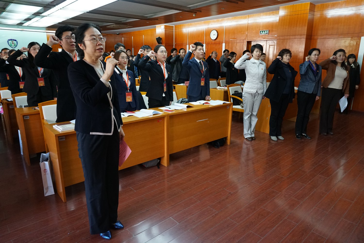 隨后,在谷曉紅書記的帶領下,全體與會人員面向黨旗,重溫入黨誓詞。