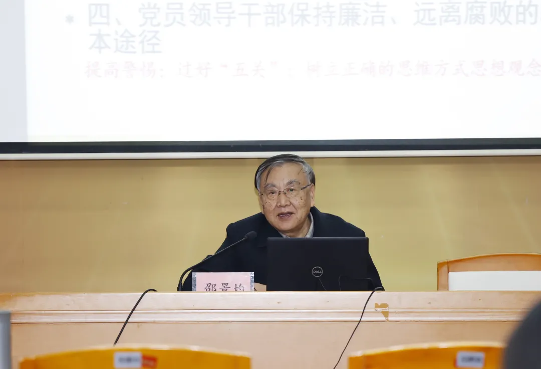 啟動會后,邵景均研究員以“學習黨百年反腐敗歷史經驗,走好中國特色反腐倡廉道路”為主題作報告。此次報告是2021年學校黨風廉政宣傳教育月“清風講堂”首場講座。在講座中,邵景均研究員介紹了中國共產黨百年反腐敗斗爭的主要歷程和基本經驗,解讀了中國特色反腐倡廉道路的形成發展和主要特點,詮釋了中央部署一體推進“不敢腐、不能腐、不想腐”的有關要求,闡釋了黨員干部保持廉潔遠離腐敗的基本途徑。
