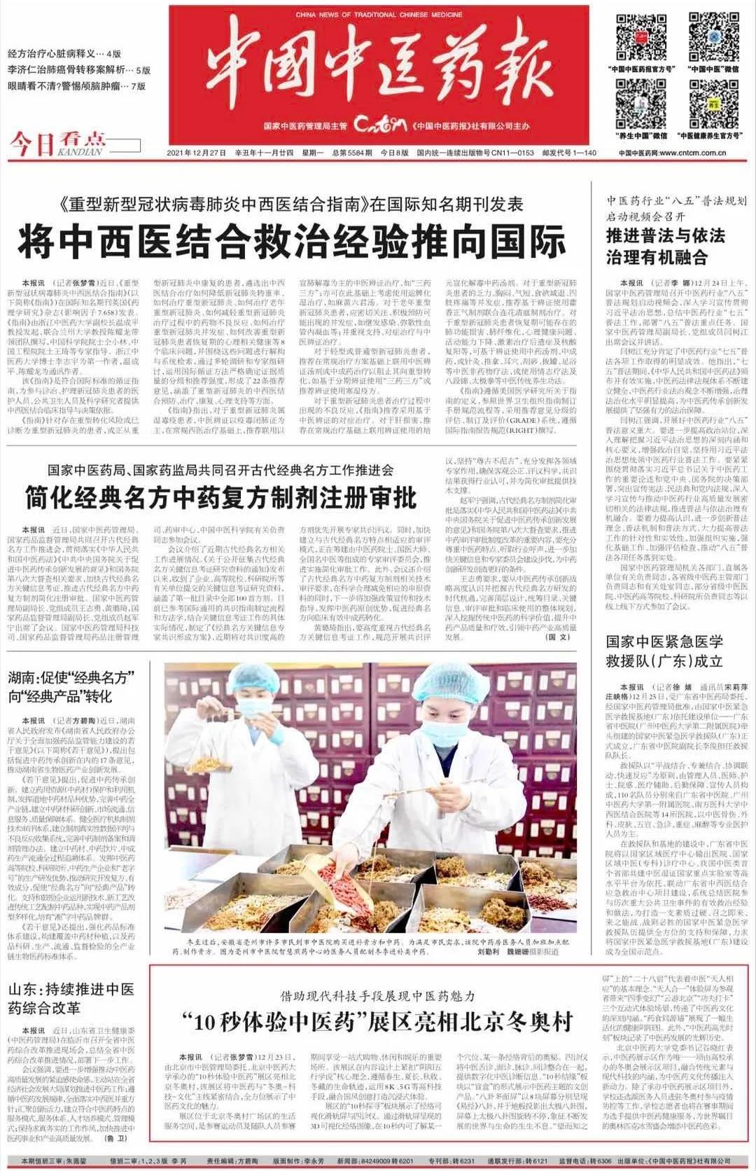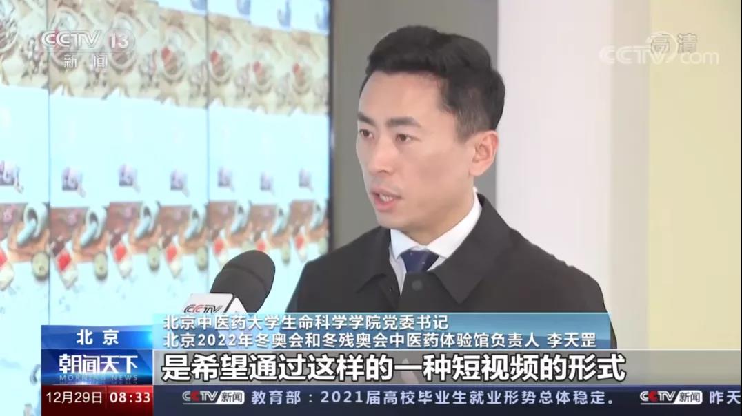 12月29日,中央電視臺《朝聞天下》節目播出冬奧村村里的“東方力量”,全方位介紹展示了由北京市中醫管理局委托我校承辦的北京冬奧村中醫藥體驗館情況。
