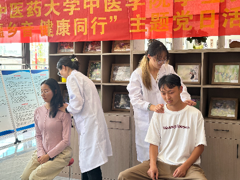 同時,另一組團隊成員在海資底社區開展“靈蘊鄉音,健康同行”主題健康服務活動,為社區基層黨員干部提供把脈問診、推拿按摩、耳豆治療、健康咨詢等服務,結合所學中醫藥知識技能,為社區干部提供個性化的保健服務和健康指導,幫助他們樹立健康的生活理念,了解中醫藥的文化內涵和實用價值。開展健康服務同時,團隊成員以“鄉村振興之組織振興”為主題,對社區基層黨員干部進行訪談,深入了解海資底社區黨組織的基本情況,并針對社區黨組織在組織振興上取得的成就、面臨的問題與挑戰、未來規劃與展望、合作與建議等方面進行全面探討。