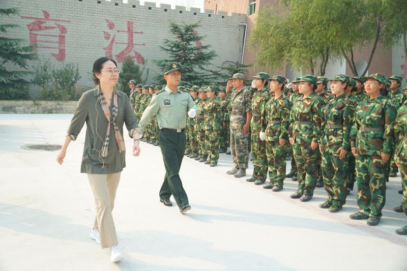 首先,由43名男生組成的國旗護衛隊邁著整齊的步伐入場,在莊嚴的國歌聲中緩緩升起五星紅旗,閱兵儀式正式開始。谷曉紅書記在軍訓團團長張毅的陪同下,依次檢閱各受閱方隊,并向全體參訓師生和教官致以親切問候。參訓師生精神飽地滿接受檢閱。