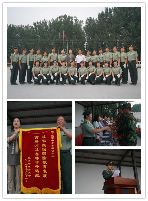 隨后,谷曉紅書記向北京中少軍培訓中心基地贈送錦旗,感謝基地對我校軍訓工作的大力支持。