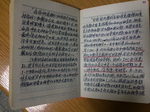 在整個訪談過程中,郭教授不時轉身,從身旁的箱子內拿出王老生前的筆記、資料,向我們展示、講解。翻看王老的筆記本,大多是廢紙、舊紙粘貼裝訂而成,即便是一張小小的32開臺歷紙,也都密密麻麻承載著王老辛勤的汗水與扎實的醫學功底。雖然紙張破舊,但王老雋秀的字跡清晰可見,筆跡工整、內容豐富、圖文并茂,讓我們大為震撼。透過這些珍貴的資料,我們可以強烈地感受到,王老對于學術研究有著一顆無比熱忱的心。在提及王老與學生的情誼時,郭教授更是笑容滿面,言語中流露出對于王老的感恩與懷念。采訪結束時,郭教授還贈予我們兩篇王老的文章,并選取其中部分段落,逐字逐句地念給我們聽,覺得見解獨特之處還為我們加以講解,郭教授不住地感嘆道:“王老雖然嘴上不說,但他心理什么都明白,不善言辭的他筆鋒犀利,措辭幽默,言論新穎。王老走了,是我們中醫學界莫大的損失”。