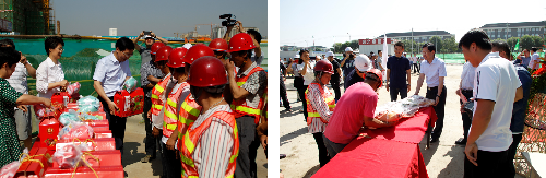 封頂儀式結束后,校領導及各學院代表視察了建設工地并慰問該項目工程建設者,向施工單位工人代表發放慰問品,對建設工人的辛勤勞動表示感謝。