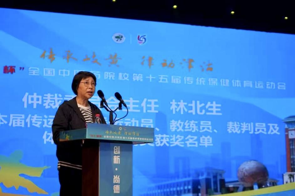 王瑤琪書記在開幕式上代表全體參賽院校領導致辭。她表示,本屆傳運會的舉辦將為廣大青年學子點燃運動激情、播撒體育火種、傳承文化精華,促進全民健身活動的廣泛開展,同時帶動體育健康產業和中醫藥事業的高質量發展。她希望各參賽隊伍要珍惜此次參賽機會,發揚頑強拼搏、團結互助的精神,在比賽中賽出風格、賽出水平、賽出友誼。希望各兄弟院校加強溝通,促進合作交流,攜手共創中醫藥事業更加美好的明天。