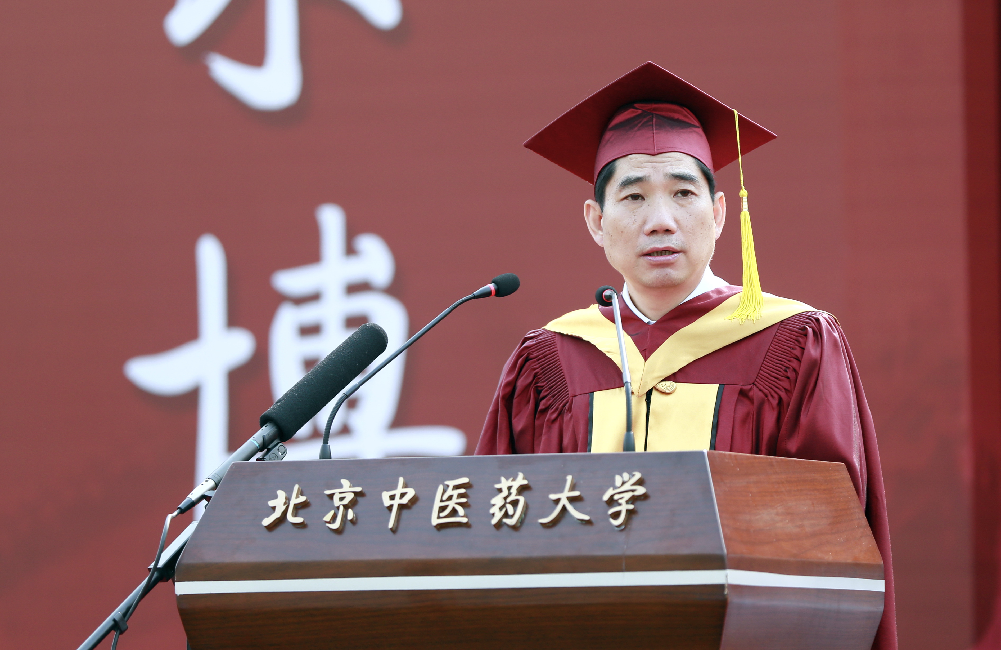 盛夏時(shí)節(jié),芳草青青,花香滿徑。今天是你們畢業(yè)典禮的日子,我和你們一樣,心中充滿喜悅,并為你們自豪。借此機(jī)會(huì),我代表學(xué)校衷心地感謝你們的家人,感謝他們的信任,把優(yōu)秀的你們送到北中醫(yī);我要感謝全校教職員工,他們盡全力為你們創(chuàng)造良好的學(xué)習(xí)和生活環(huán)境;我還要感謝你們,我親愛(ài)的同學(xué)們,感謝你們?cè)诒敝嗅t(yī)的日日夜夜、點(diǎn)點(diǎn)滴滴,這些都將鐫刻到北中醫(yī)的歷史上。作為校長(zhǎng),我為每一個(gè)不可替代的你們點(diǎn)贊。同學(xué)們,祝賀你們畢業(yè)了!