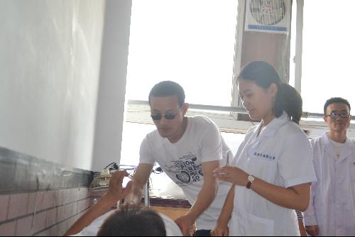 25日上午,社會實踐團成員在天鎮縣同仁醫院進行義診和健康志愿咨詢活動。活動受到了當地居民的熱烈歡迎,共有近200人次前來就診和咨詢。天鎮縣志愿者也到場提供幫助。在活動最后,當地培養的盲人推拿師與老師和同學們進行了推拿技法的交流。王劍輝副主席表示,到貧困地區進行志愿活動,不但要滿足當地群眾的醫療需要,也要通過教學、交流的方式提高當地的醫療水平,引導他們走向小康。