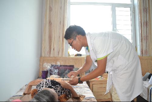 25日下午,研究生們為新城敬老院老人們進行保健和健康咨詢活動。新城敬老院為當地敬老愛老示范基地,在敬老院里住著10位八十歲以上的老人和20多位五保戶老人。志愿者同學為老人們進行了扎針、艾灸、測量血壓、按摩和耳穴貼敷等,并和老人們親切交談。老人們十分感謝敬老院的工作人員對他們無微不至的照顧,許多五保戶老人都把那里的工作人員當作自己的兒女一樣看待。敬老院工作人員的善舉讓志愿者同學深受感動,也感受到本次活動的重要意義。