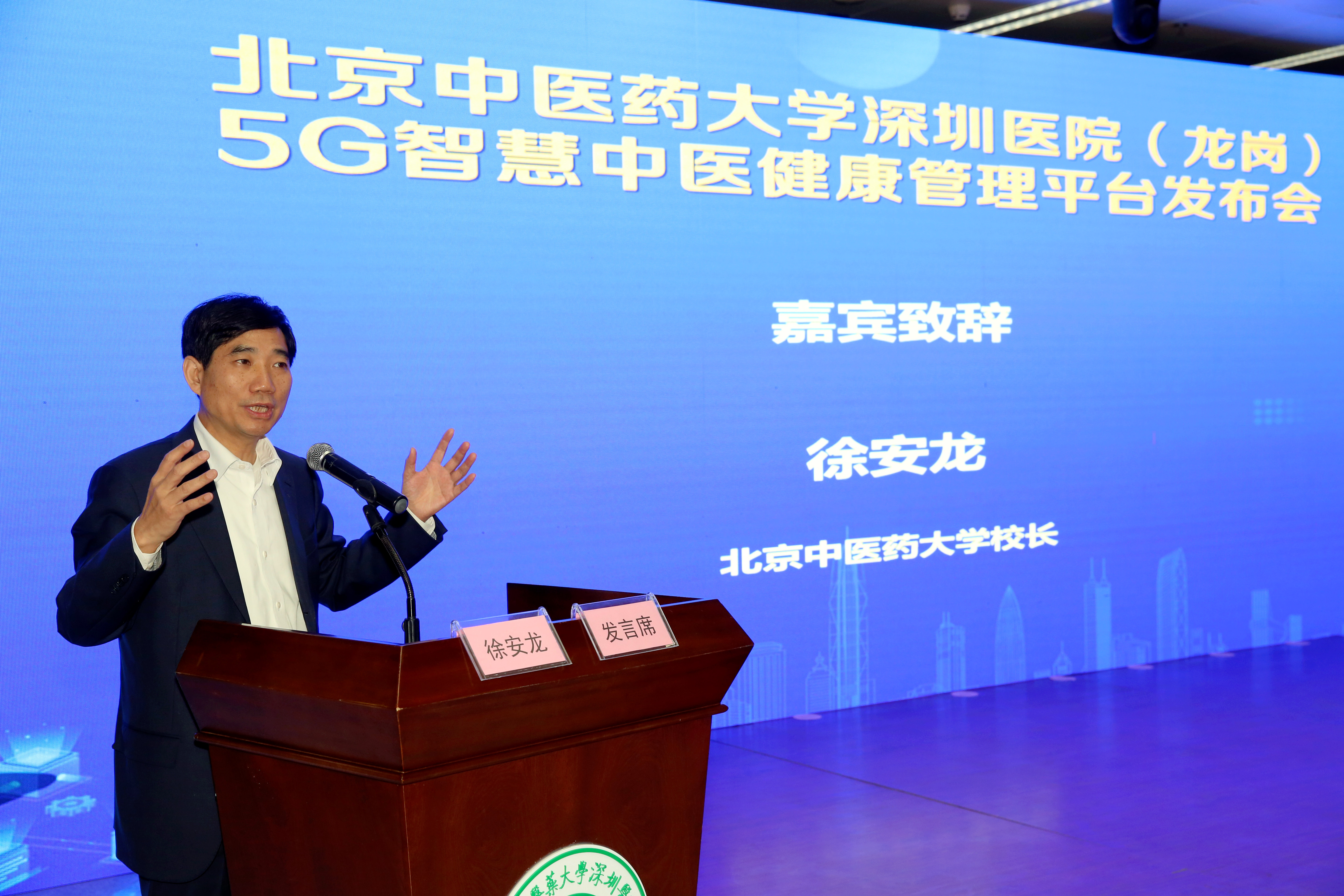 我校校長徐安龍在致辭中說,習近平總書記關于中醫藥工作的重要指示要求中醫藥事業要“傳承精華,守正創新”,我們今天在這里發布全國首個5G智慧中醫健康管理平臺,就是以最快的速度踐行習近平總書記關于中醫藥工作的重要指示和全國中醫藥大會精神。我們希望借助5G智慧中醫健康管理平臺啟動,讓中醫擁抱現代科技,讓中醫找到高科技的嫁接載體,飛入千家萬戶,進而更好地服務居民的健康,實現全新的人類健康管理模式。徐安龍校長還表示,北京中醫藥大學和各附屬醫院將以龍崗模式為先導,繼續探索中醫藥和現代科技的融合,不斷推進中醫藥事業的繁榮發展,為人類命運共同體提供中醫方案。