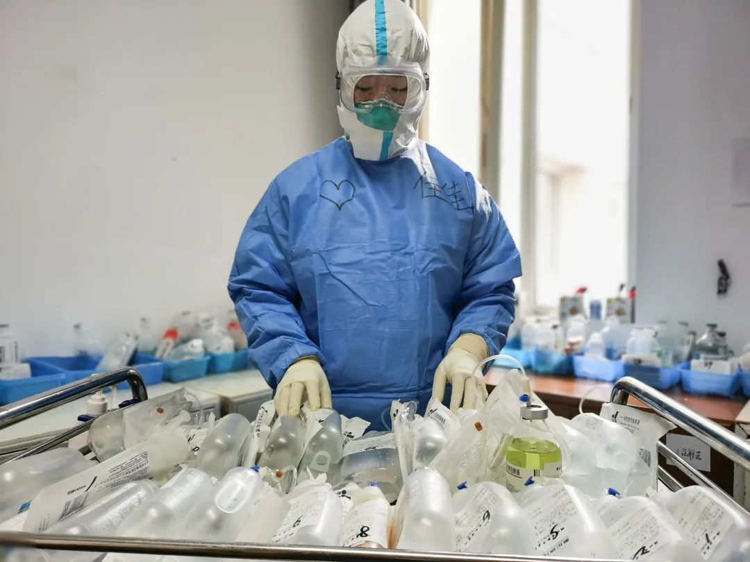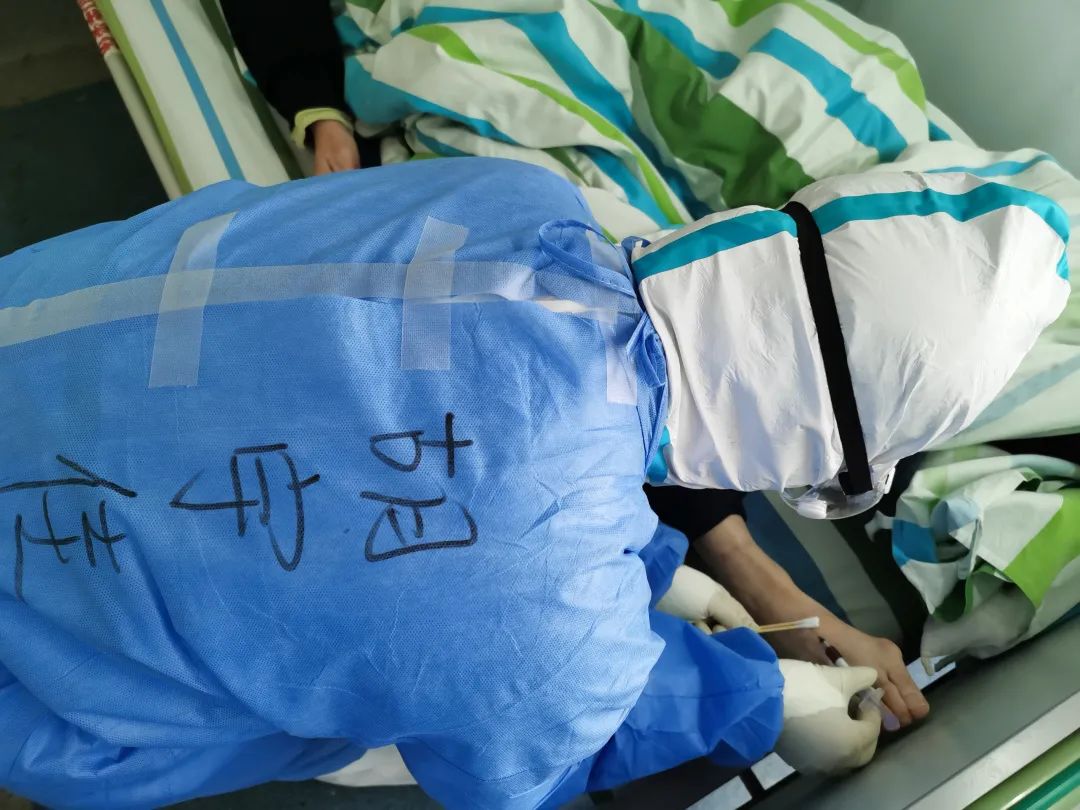 工作在隔離病房,胡宇佳與其他護士姐妹一樣,要不間斷地穿梭在隔離區,完成患者輸液、采血等工作。同時還要做好患者的生活護理,打開水、溫中藥、送三餐、收垃圾等等。一個班下來,一刻也不得休息,連喝水也顧不上,覺得渴了就自己舔舔雙唇。防護服、隔離衣、雙層無菌手套、護目鏡,多層防護給護理操作增加了不小的難度,也對護士的技術能力提出了更高的要求。