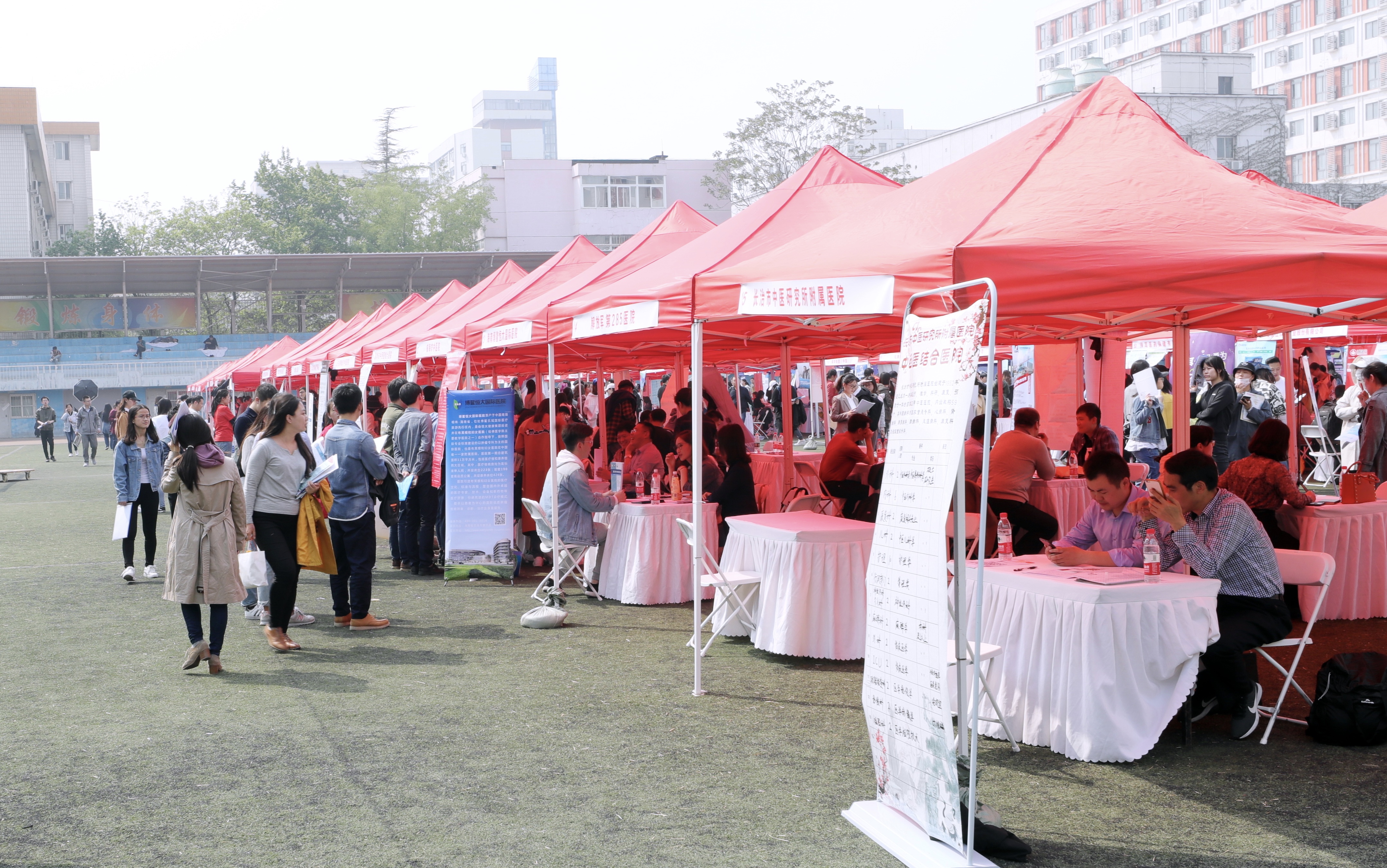 4月17日下午,我校在和平街校區(qū)體育場舉辦2019屆畢業(yè)生春季大型雙選會。