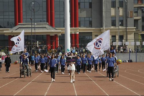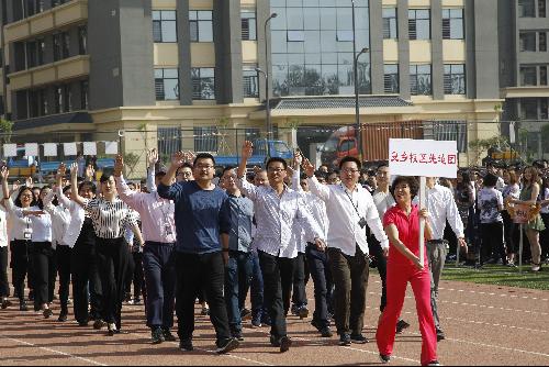上午八點半,伴隨著激昂的運動員進行曲,由良鄉校區近3000余名師生組成的52個方隊,在國旗班、校旗和女子民兵連隊的引導下,精神飽滿、步履整齊地依次經過主席臺。