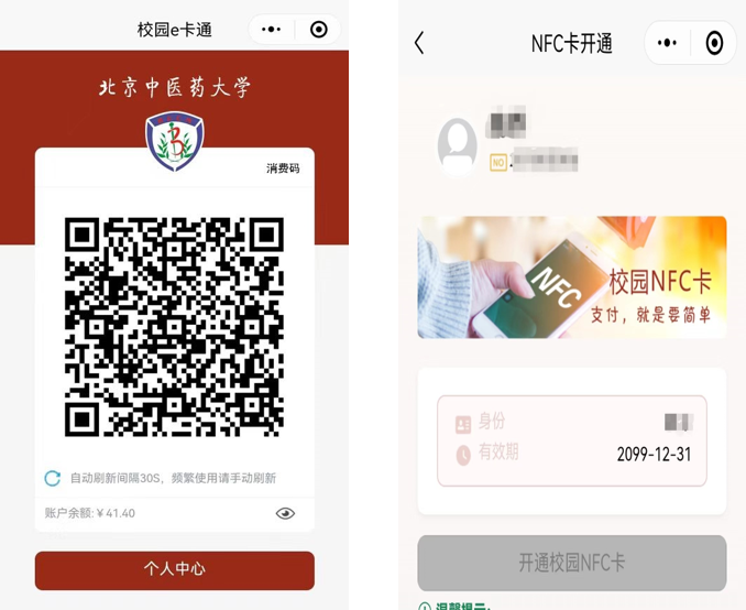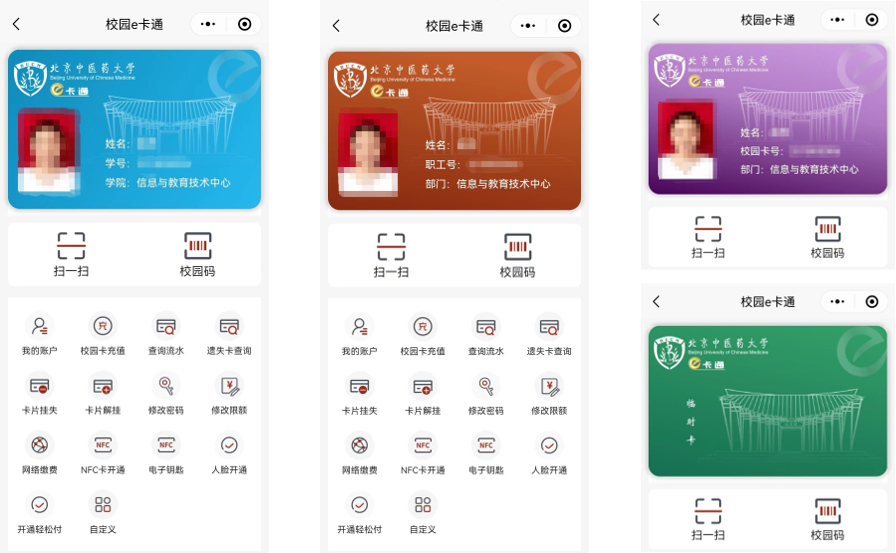 作為智慧校園的重要組成部分,校園一卡通自2010年上線以來,已經陪伴北中醫人走過了14個春秋。作為校園內電子支付和電子身份識別的唯一憑證,已經覆蓋了食堂就餐、超市購物、在線繳費、購買熱水、自助打印成績單、校內就醫、圖書借閱、網絡繳費、教室多媒體控制、門禁識別、智能門鎖、通行控制、自助服務等十三大類應用范圍。