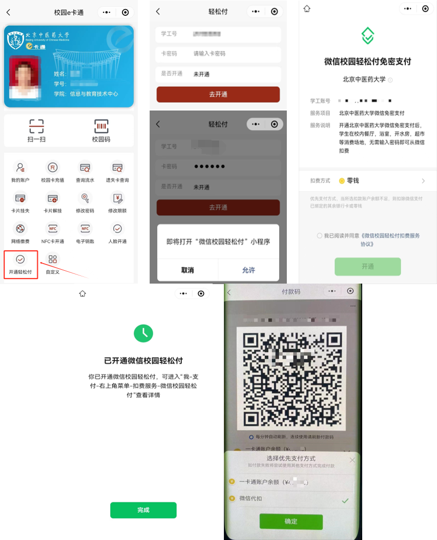 校園一卡通與微信“輕松付”打通。開通微信“輕松付”,校內消費告別儲值模式,可直接微信支付。此外,啟用“信用錢包”,可實現斷網后的應急使用。