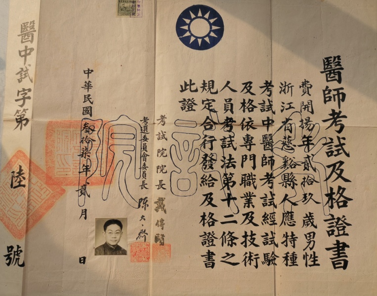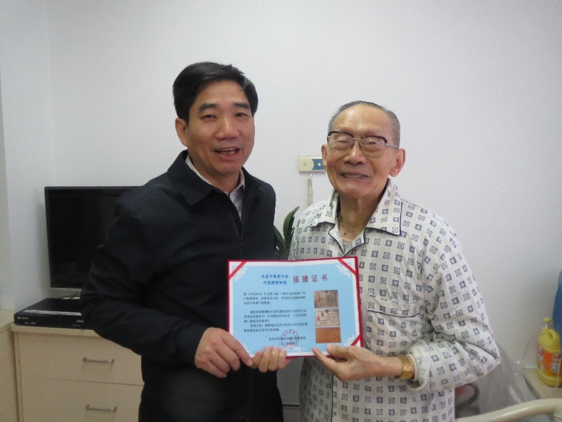 為支持我校進一步做好中醫傳承和人才培養,感染更多中醫學子成為合格中醫藥事業接班人,費開揚教授將珍藏多年的中華民國時期《中醫師考試合格證書》、《中華國醫學會證書》及刊登了中醫考試榜單的《中醫藥情報》報紙委托徐校長捐贈給我校。為了使這幾件珍貴的文物有機會與廣大師生和校內外中醫愛好者見面,目前已經由中醫藥博物館妥善保管,并將于近期開始在博物館中國醫學史展廳亮相。