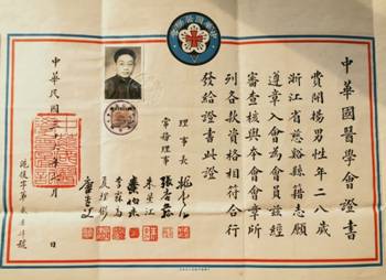 處境艱難的民國中醫為謀求傳承和發展,創立了很多學會和團體。費開揚教授在當時繁重的診療工作之余,于1947年正式加入了當時地處上海的中華國醫學會,共謀中醫學術傳承和發展。此次,費開揚教授也將他珍藏多年的民國年間《中華國醫學會》會員證書捐贈給了我校。