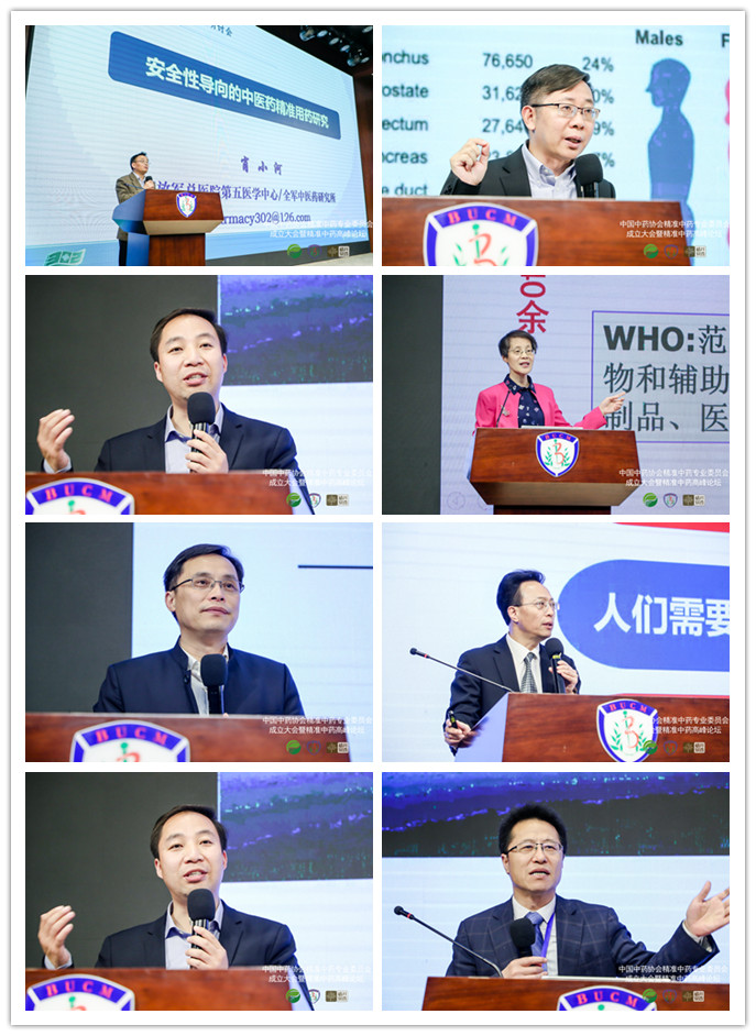 隨后,精準中藥高峰論壇開幕,專家學者作精彩報告。張世臣教授圍繞《飲片炮制和中醫精準醫療》做了精彩匯報;解放軍總醫院第五醫學中心中藥研究所所長肖小河做了《安全性導向的中醫藥精準用藥研究》報告;美國食品和藥物管理局藥物審評中心審評員龔兆龍做了《生物標記物驅動精準腫瘤新藥開發》報告;我校中藥學院副院長李軍就中藥的質量標準問題做了《中藥質量標準現狀及其發展思路》報告;我校中藥學院張冰教授做了《中藥藥物警戒推動中藥精準用藥》報告;中國工程院院士、中國中醫科學院黃璐琦教授做了《中藥活性成分合成生物學研究》報告;我校中藥學院王林元教授圍繞《中藥復方精準保健產品研發》做報告;中藥學院魏勝利副院長做了《精準藥材定向培育的實踐與前景展望》報告;中藥學院雷海民院長圍繞《精準飲片相關科學問題及前景展望》提出了精準中藥專業委員會的工作重心。