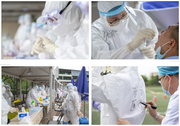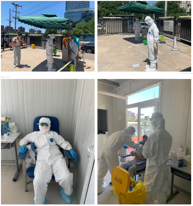 第一臨床醫(yī)學(xué)院(東直門(mén)醫(yī)院)通州院區(qū)負(fù)責(zé)支援馬駒橋社區(qū)衛(wèi)生服務(wù)中心。6月16日,炎炎烈日下,大家穿著密閉的防護(hù)服,在園區(qū)內(nèi)物流公司的空?qǐng)隼镏?0張采樣臺(tái),開(kāi)始對(duì)重點(diǎn)人群進(jìn)行采樣。在37度戶(hù)外高溫的炙烤下,做核酸檢測(cè)的醫(yī)務(wù)人員全副武裝,用汗水與病毒賽跑。從早上一直到次日凌晨,有的醫(yī)務(wù)人員發(fā)生了中暑現(xiàn)象,休息一個(gè)多小時(shí),又立刻返回采樣一線,他們說(shuō):“大家都頂著太陽(yáng)奮戰(zhàn),我們休息會(huì)就好了,還能干,沒(méi)問(wèn)題。”