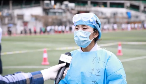第二臨床醫(yī)學(xué)院(東方醫(yī)院)所處的豐臺(tái)區(qū)是此次疫情高發(fā)地區(qū),醫(yī)院第一時(shí)間從各科室抽調(diào)百余名醫(yī)護(hù)人員組建咽拭子采樣和抗體檢測(cè)隊(duì)伍,支援豐臺(tái)區(qū)核酸檢測(cè)及血清抗體檢測(cè)任務(wù),前往方莊體育公園為居民做核酸檢測(cè)篩查。護(hù)士孫艷榮是今年參加過(guò)援鄂任務(wù)的國(guó)家中醫(yī)醫(yī)療隊(duì)隊(duì)員,她向采訪的央視記者介紹說(shuō):“每個(gè)人做完核酸采集,我們都要更換手套,手部消毒后再戴下一副手套,給下一位居民去做。被檢人接觸到的椅子,我們也要進(jìn)行消殺。”
