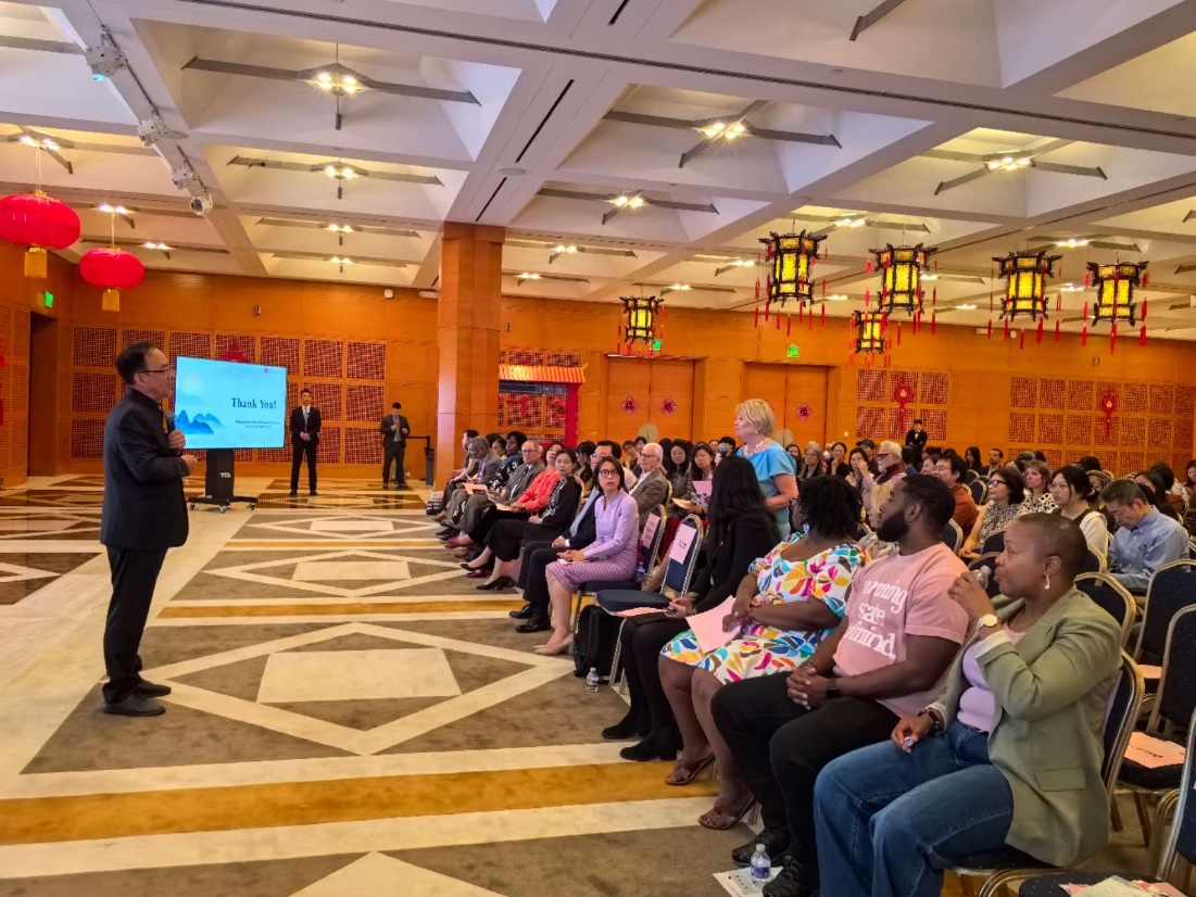 在教育部中外語言交流合作中心的支持下,我校與中國駐美國大使館攜手主辦了盛大的國際中文日“中文+中醫藥文化”巡講巡展活動。本次國際中文日以“中文:穿越時空的禮物”為主題,我校巡講巡展團隊通過融入中醫藥元素,精心設計了講座、體驗、對話會等一系列活動,為國際中文日注入新的文化內涵,生動詮釋了中文與中醫藥作為中華文明“雙璧”的深厚底蘊和獨特價值。