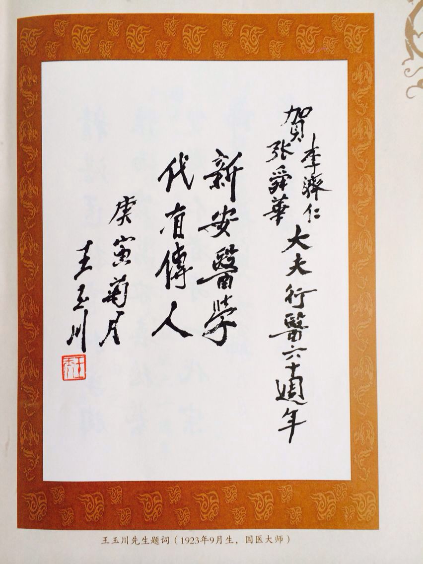 可能是因?yàn)橥跤翊ɡ舷壬乃枷胩^超前,許多人都不能理解他的心境,高處不勝寒的他在別人看來是不近人情的。但張其成教授和他的父親卻十分清楚,這位獻(xiàn)身于學(xué)術(shù)的大師,骨子里是最重情義,也是極為真誠(chéng)的。旁人若是拜托王老題字,或是要求采訪,王老都會(huì)一概回絕,可當(dāng)李濟(jì)仁教授請(qǐng)王老題詞時(shí),王老則是責(zé)無(wú)旁貸、熱情相贈(zèng)。在采訪時(shí),張教授還熱情地向我們展示了王老贈(zèng)予的題詞,我想,這份濃厚的師生情誼對(duì)于張教授來說也是彌足珍貴。