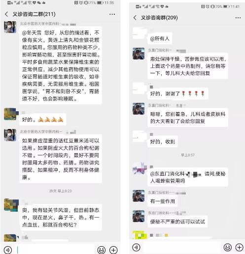 面對(duì)疫情,第一臨床醫(yī)學(xué)院(東直門醫(yī)院)博士生研究生周波、張凱歌,碩士研究生陳海敏等共同發(fā)起線上義診健康咨詢活動(dòng),目前已招募到來自我校和北京協(xié)和醫(yī)學(xué)院、中國(guó)中醫(yī)科學(xué)院、北京大學(xué)醫(yī)學(xué)部、首都醫(yī)科大學(xué)等醫(yī)學(xué)院校的63名志愿者(全部具有執(zhí)業(yè)醫(yī)師資格證書)加入義診團(tuán)隊(duì),在線上累計(jì)為1000多名患者提供了中西醫(yī)義診咨詢服務(wù)。咨詢者都得到了專業(yè)的診療建議,不少咨詢者使用了艾灸、推拿等中醫(yī)治療方法。團(tuán)隊(duì)已篩查出了5例疑似新冠肺炎患者,在指導(dǎo)上報(bào)有關(guān)部門的同時(shí),通過中醫(yī)治療方法緩解患者的癥狀,也消除了患者的焦慮情緒。
