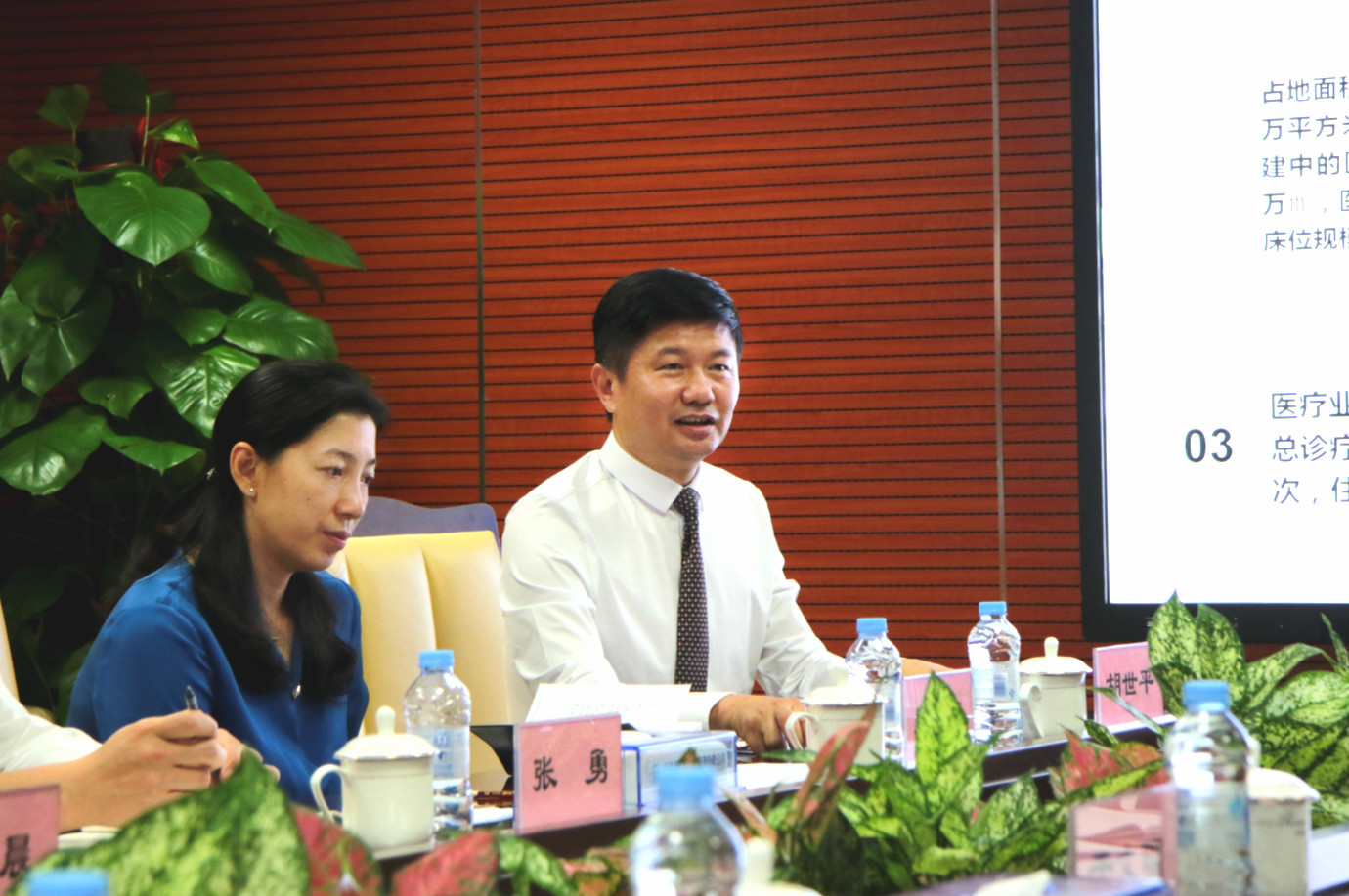 于文明一行現場調研了醫院門診部、住院部和深圳市中醫藥博物館,并在調研座談會上聽取了醫院發展情況匯報。于文明局長對醫院發展給予了高度肯定。他指出,有力的外部環境給醫院發展帶來空間,造就了北京中醫藥大學深圳醫院的深圳速度。他指出,接下來考慮將北京中醫藥大學深圳醫院(龍崗區中醫院)作為全國中醫藥事業的改革試點,配套一些研究課題和先行先試的政策,擬在中醫藥事業的政府投入政策、人才隊伍加強和醫改支付引導政策等方面總結出“龍崗經驗”和“龍崗模式”,為國家層面政策措施和行動計劃探索經驗。