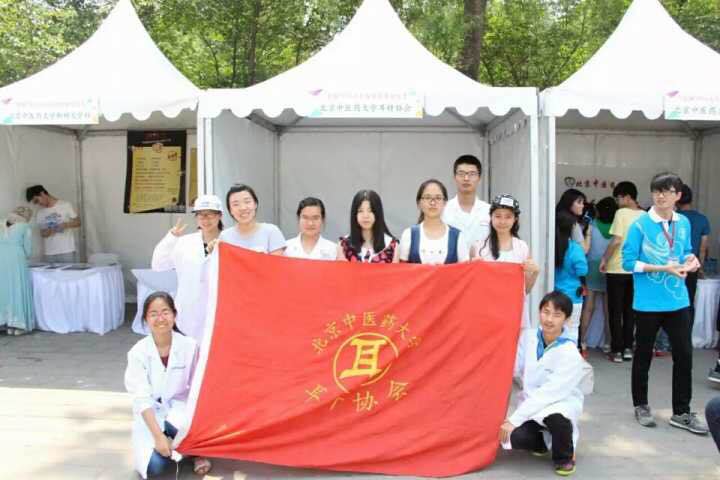 為深入貫徹落實黨的群團會議精神,推動北京高校學生社團平穩、高效發展,全面展示北京高校社團組織的整體形象和工作成果,加大高校社團優質資源的社會化共享力度,充分發揮高校社團對社會文化發展的引領作用,在北京團市委的指導下,5月21、22日,“社彩華章,青春領航”雪鶴2016北京高校社團文化節在玉淵潭公園舉行。我校推拿協會、耳針協會、手診協會、翱翔文學社、自強社、手語社、叮當街舞社、X-ray舞團、簡影手工社、中醫天地協會、清風茶社等共10余個優秀社團參與了此次活動。