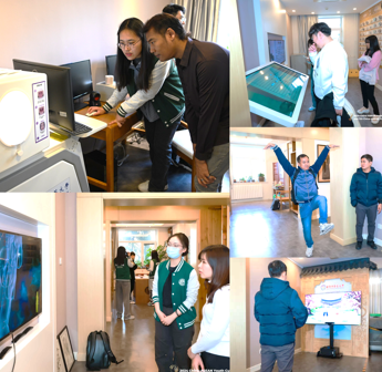 講座結束后,各位嘉賓與青年代表在中醫藥體驗館國針館各診室親身體驗了四診、耳豆、艾灸、針刺、推拿、拔罐、五音、導引等中醫藥特色診療手段及養生功法,與我校中醫國際傳播協會學生骨干成員深入交流。并體驗了中藥五味、了解經絡穴位、學習養生功法、感受中藥炮制過程等。