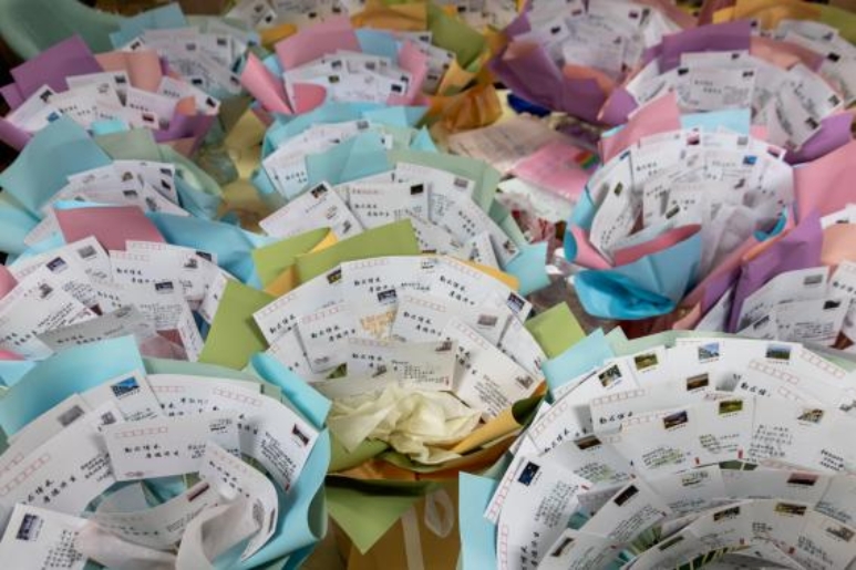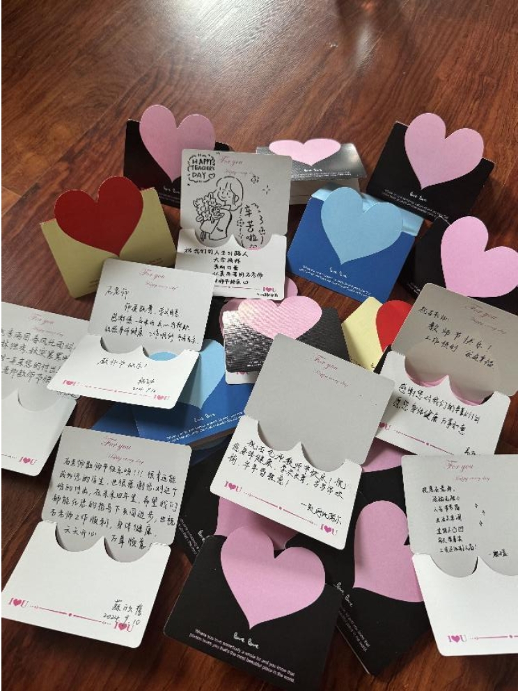 在“桃李真心,紙上言情”的明信片寄言環節,學生們紛紛拿起筆,在明信片上寫下對老師的深情話語。一張張明信片,承載著學生們的千言萬語和真摯情感。它們被制成花束,送到了老師手中,成為師生間深厚情誼的象征。
