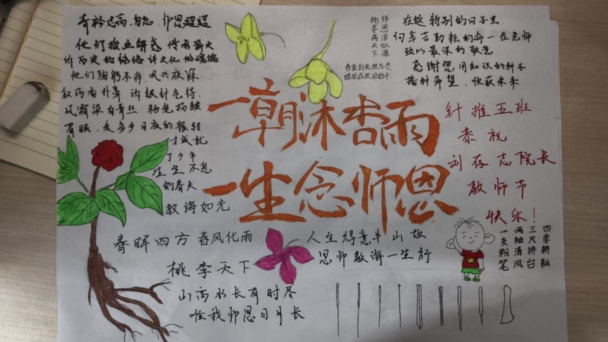 中醫學院學生會精心籌備并舉辦了“桃李獻真言,筆墨謝師恩”特別活動,為辛勤耕耘的老師送上最誠摯的祝福,表達同學們崇高的敬意。