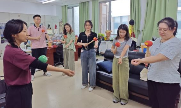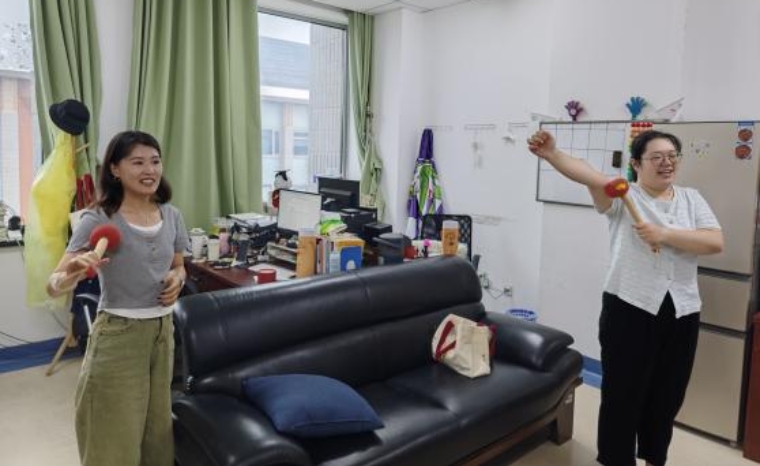 國學院2022級碩博班班委前往國學院學辦辦公室,向長久以來辛勤付出的老師贈送艾草錘及節日賀卡,并帶領各位老師做八虛操。
