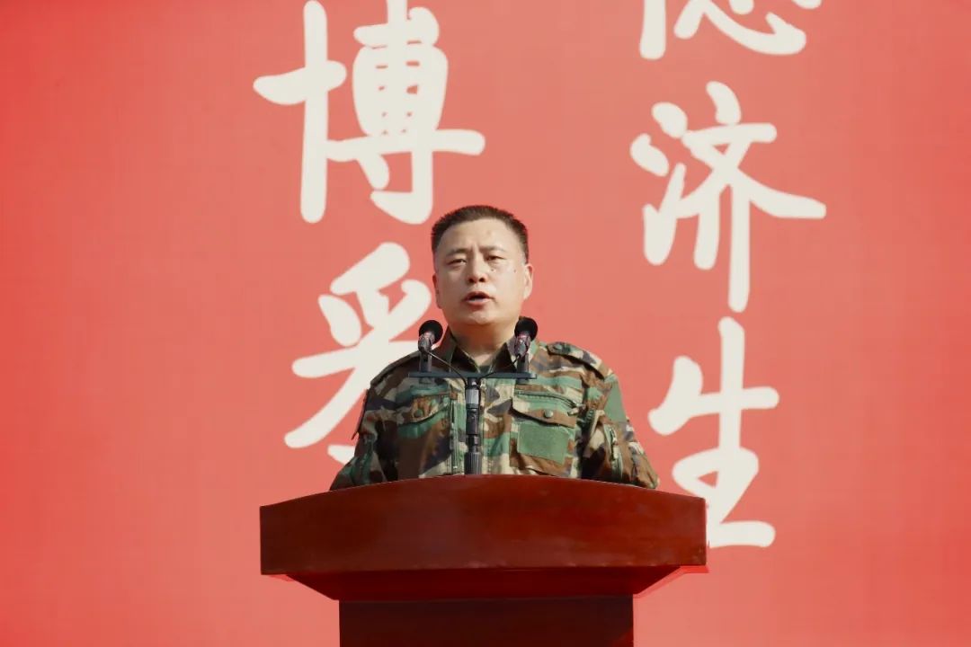 張繼旺副書記在動員講話中對參加軍訓的全體同學提出三點要求。一是要珍惜軍訓機會,錘煉意志品質。希望同學們嚴肅對待軍訓,始終保持飽滿的熱情和高昂的斗志,全身心地投入,一絲不茍完成軍訓各項任務。二是要嚴守軍訓紀律,增強集體意識。希望同學們一切行動聽指揮,嚴守紀律,尊重教官,服從管理,培養團隊精神、集體意識。三是要勇敢挑戰自我,展現青春風采。希望同學們能夠堅定信念,咬緊牙關,不斷挑戰自我,克服困難,努力成為更好的自己。