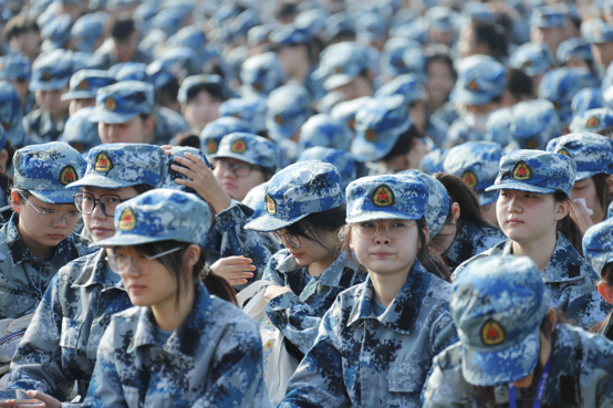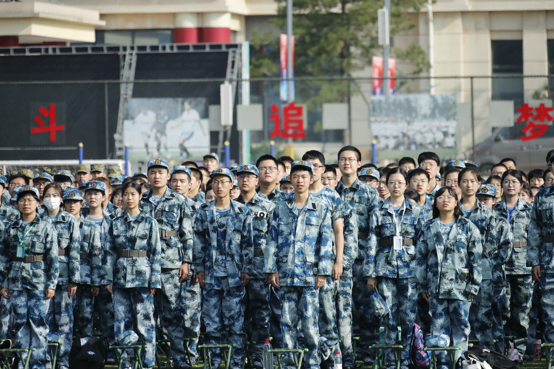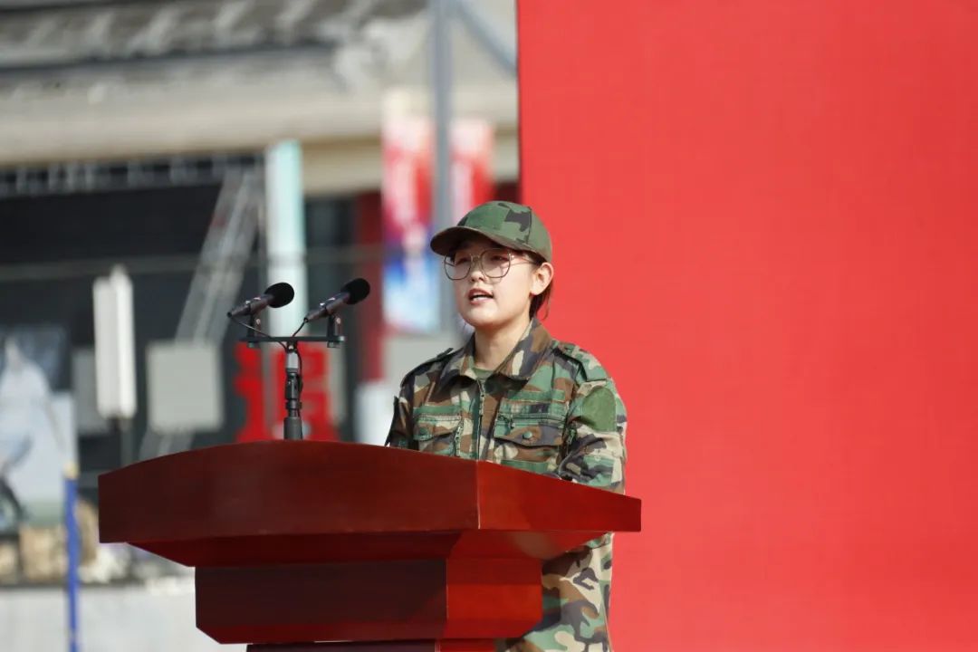 中醫學院2023級王楚宣同學作為新生代表發言。她號召全體同學在軍訓中要對自己高標準、嚴要求,嚴守軍紀,服從教官,一切行動聽指揮,發揚團結互助的優良作風,認真參加訓練,以頑強拼搏的精神面貌,展現新時代中醫學子風采。