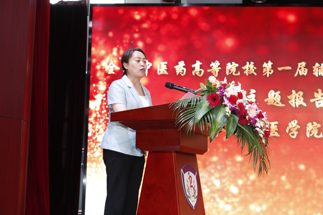 河北中醫(yī)學(xué)院黨委常委、副院長(zhǎng)張明莉主持專家報(bào)告會(huì)。