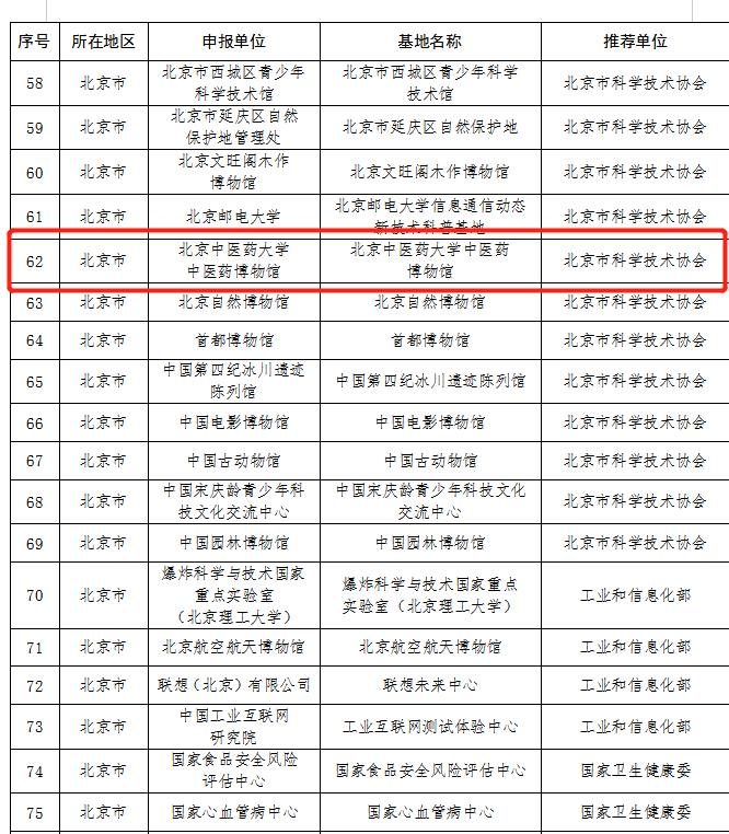 近日,中國科學技術協會發布了《關于命名2021-2025年第一批全國科普教育基地的決定》,認定北京中醫藥大學中醫藥博物館為首批全國科普教育基地之一。